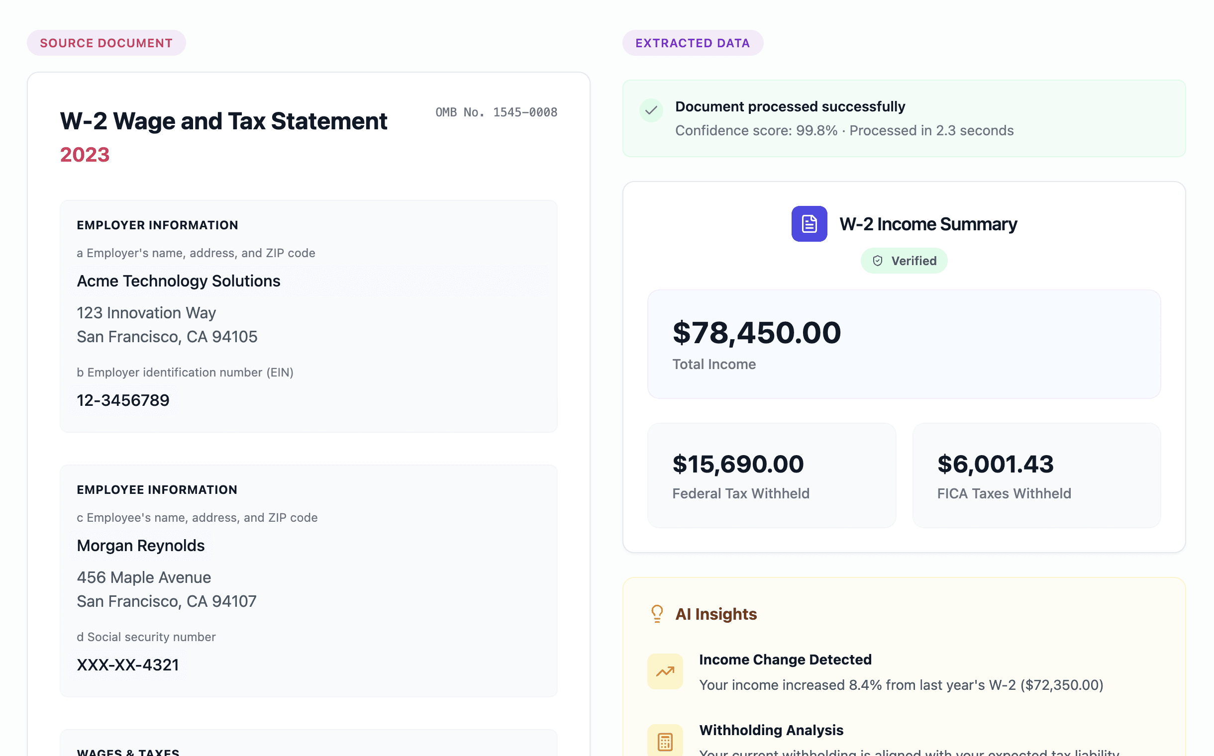AI reads documents and populates your software directly. No manual typing. No data entry delays. Your returns move faster through prep because your team isn't stuck on data entry.